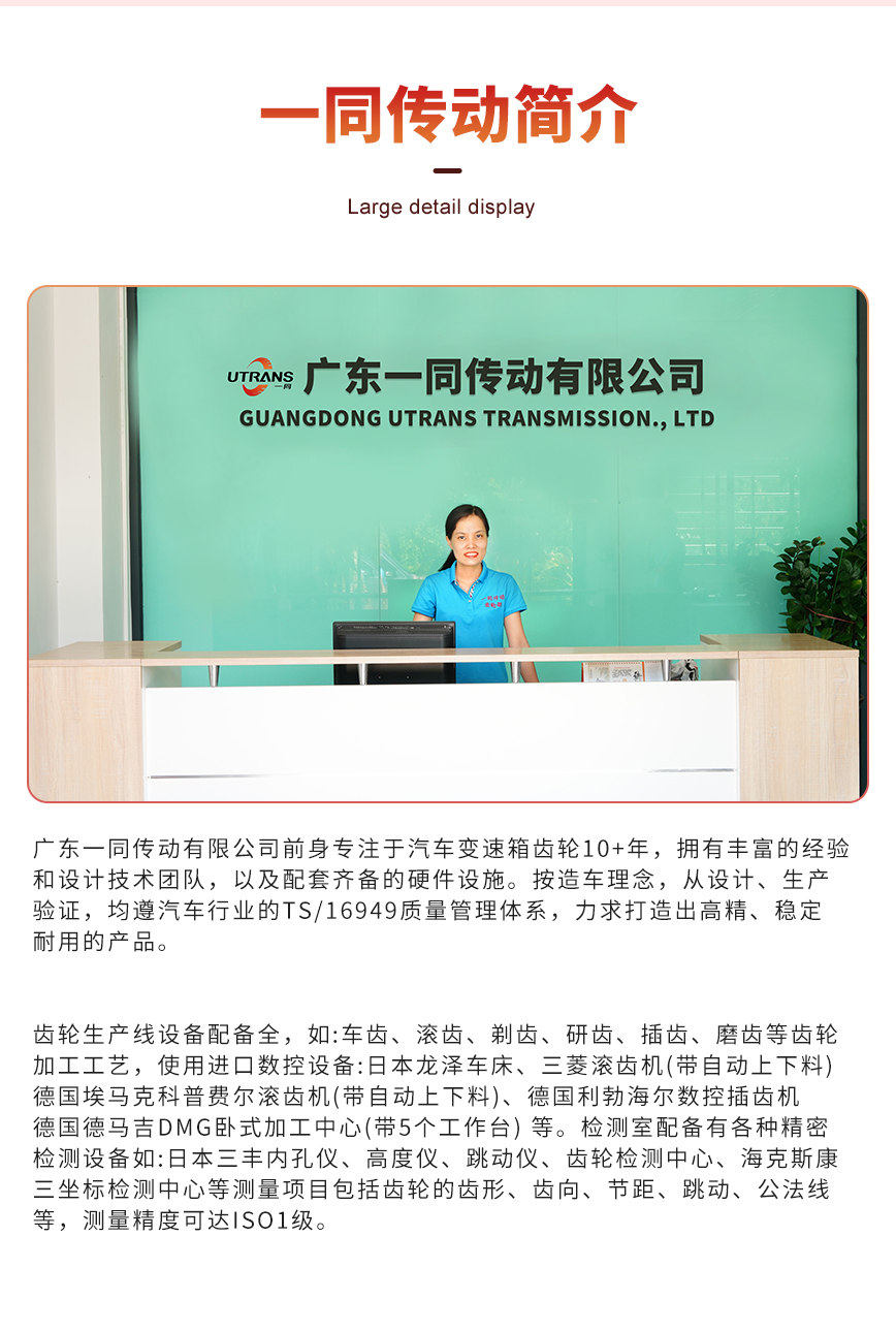 廣東一同傳動有限公司(精密齒輪加工廠家)前身專注于汽車變速箱齒輪10+年,擁有豐富的經(jīng)驗和設(shè)計技術(shù)團隊,以及配套齊備的硬件設(shè)施。